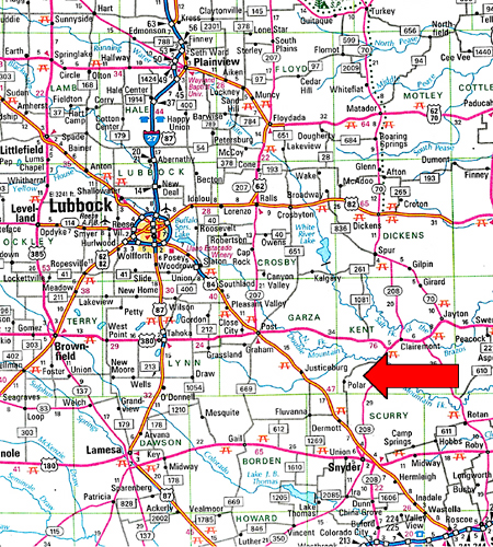 Approximately 26 miles northwest of Snyder